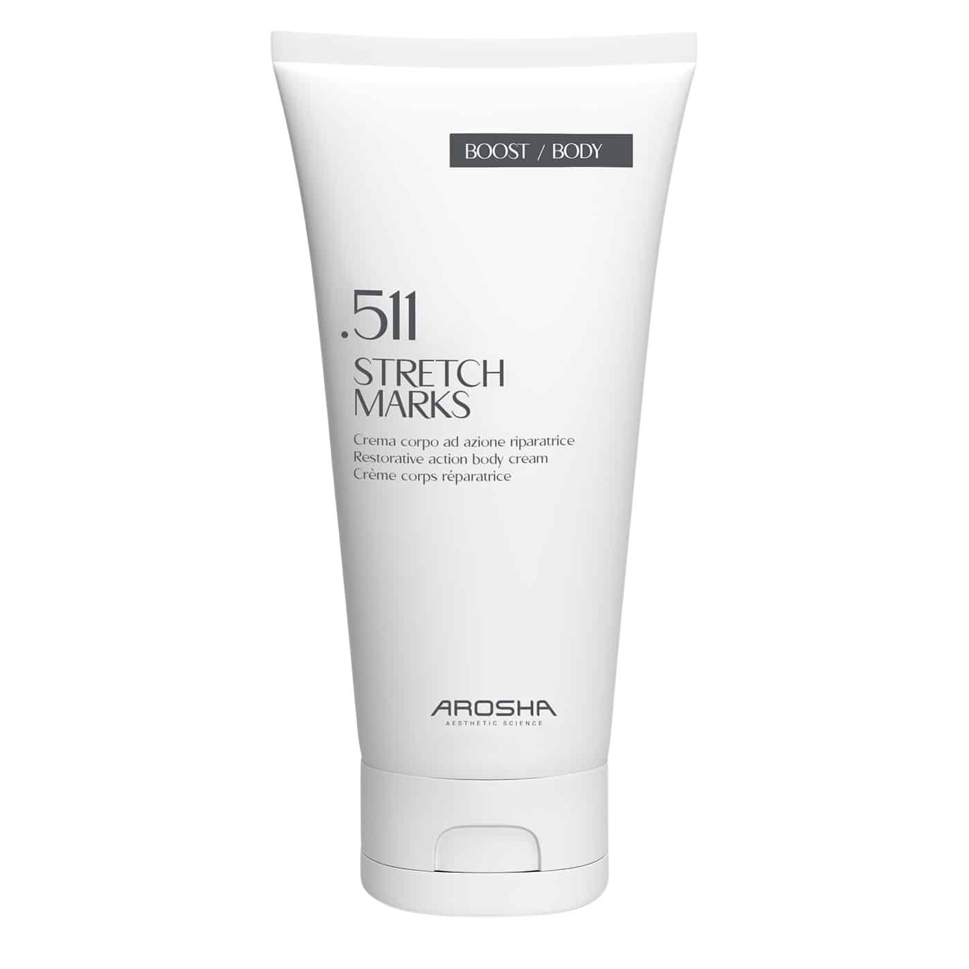 Arosha 511 STRETCH MARKS yra atkuriamasis kūno kremas, skirtas strijų išvaizdai gerinti ir bendrai odos kokybei stiprinti. Formulė palaiko ląstelių regeneraciją ir audinių rekompaktizaciją, padėdama sumažinti esamų strijų matomumą ir užkirsti kelią naujų atsiradimui.