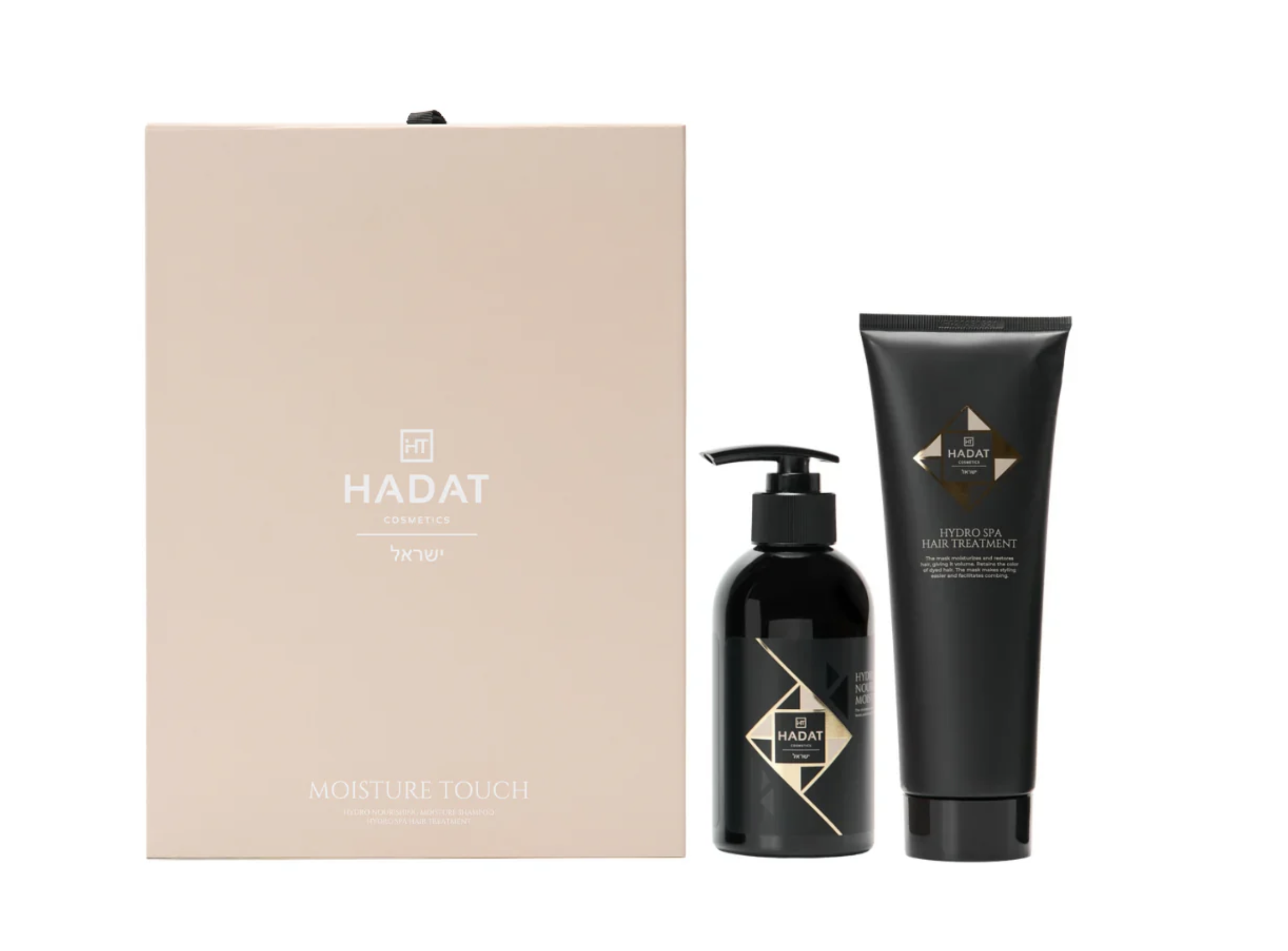 HADAT Cosmetics Hydro Moisture Touch dovanų rinkinys – tai praktiškas, kasdien lengvai pritaikomas duetas, kuris padeda atkurti drėgmę, sumažinti sausumą ir suteikti plaukams „spa“ pojūtį namuose.